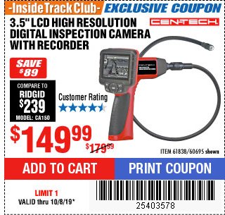 . 4 product ratings Cen-tech 61839 Digital Inspection Camera centech video tool led lights. 135 with the 20 off coupon. We offer a full and comprehensive inspection services to help you understand the condition of the property you are considering for purchase.